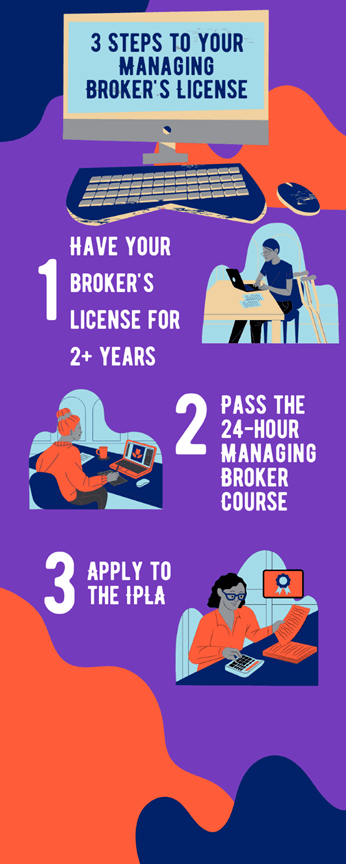 So long as you have had your Broker’s license for at least 2 years, the only thing you need to do to be licensed as a Managing Broker is complete the 24-hour Managing Broker Course and apply to the IREC. There is no state exam to get your Managing Broker License.